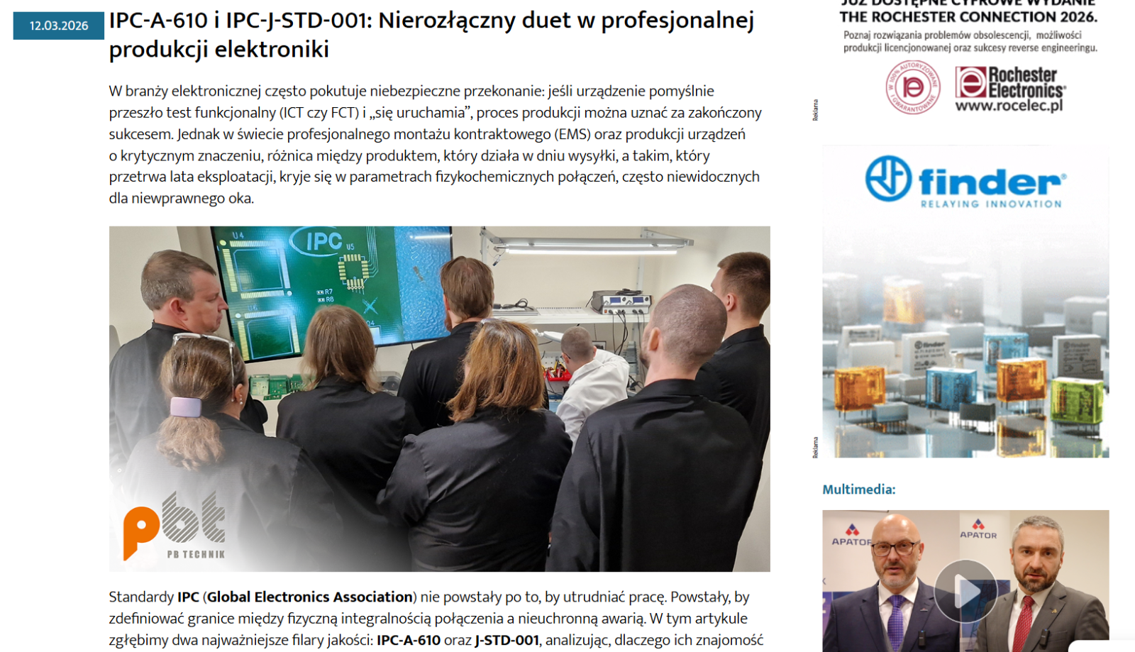 Samo „uruchamianie się” elektroniki to za mało, by zagwarantować jej wieloletnią niezawodność w trudnych warunkach eksploatacji. Kluczem do sukcesu jest synergia standardów IPC-A-610 oraz J-STD-001, które definiują granice między fizyczną integralnością połączenia a nieuchronną awarią. Artykuł wyjaśnia, jak dzięki tym normom wyeliminować kosztowne „ukryte wady” i wdrożyć strategię First Time Right w Twoim zakładzie. Dowiedz się, dlaczego certyfikacja IPC to dziś niezbędny paszport do kontraktów w branży medycznej, lotniczej i automotive.